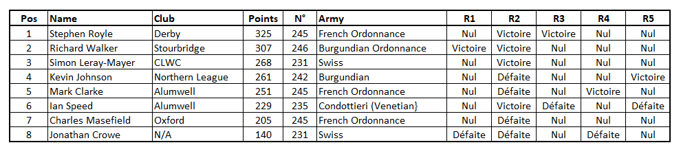 | Mark G Fry a écrit: | | kevinj a écrit: | Unfortunately Tim is unable to attend Roll Call this weekend. As a result, I will be handling scores and draws for both 15mm and 28mm ADLG. The first round for 15mm and all rounds for 28mm will be as in Tim's post above, subject of course to any last minute revisions resulting from dropouts.