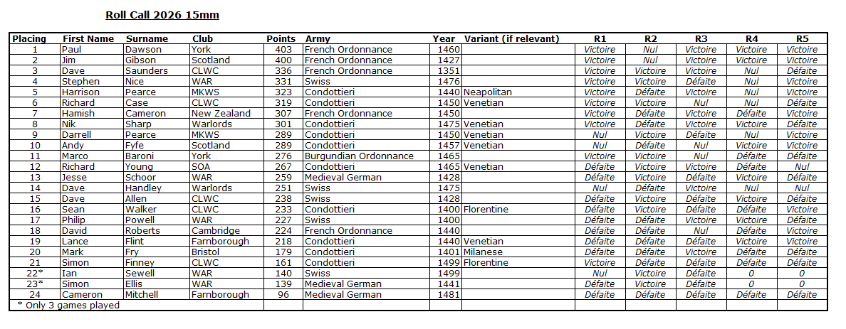 Roll Call 2026 - The 15mm First Round Draw